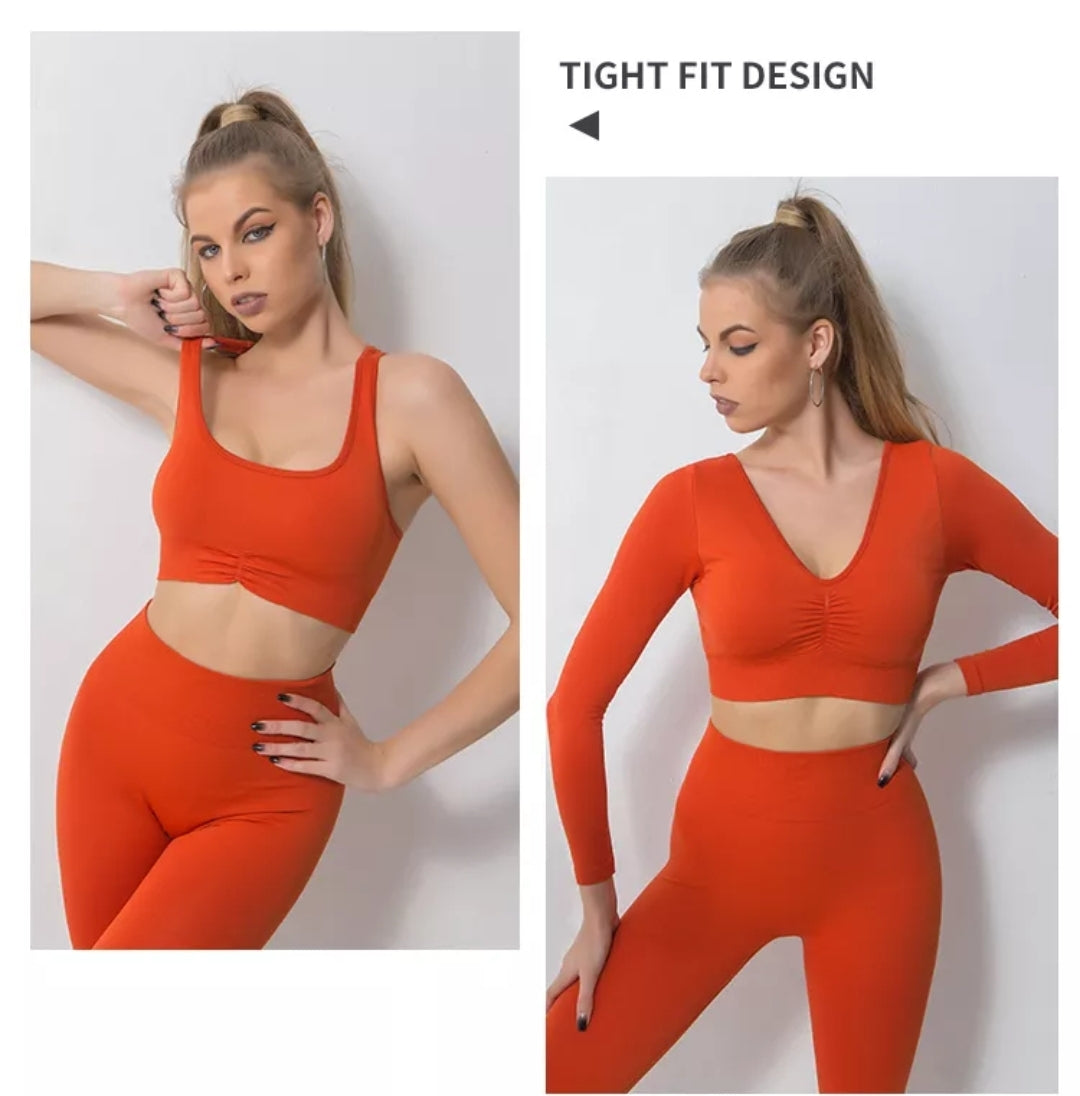 Sets deportivos con varias combinaciones. Leggins + top fruncido, leg+ top cruzado. Leggins + croptop