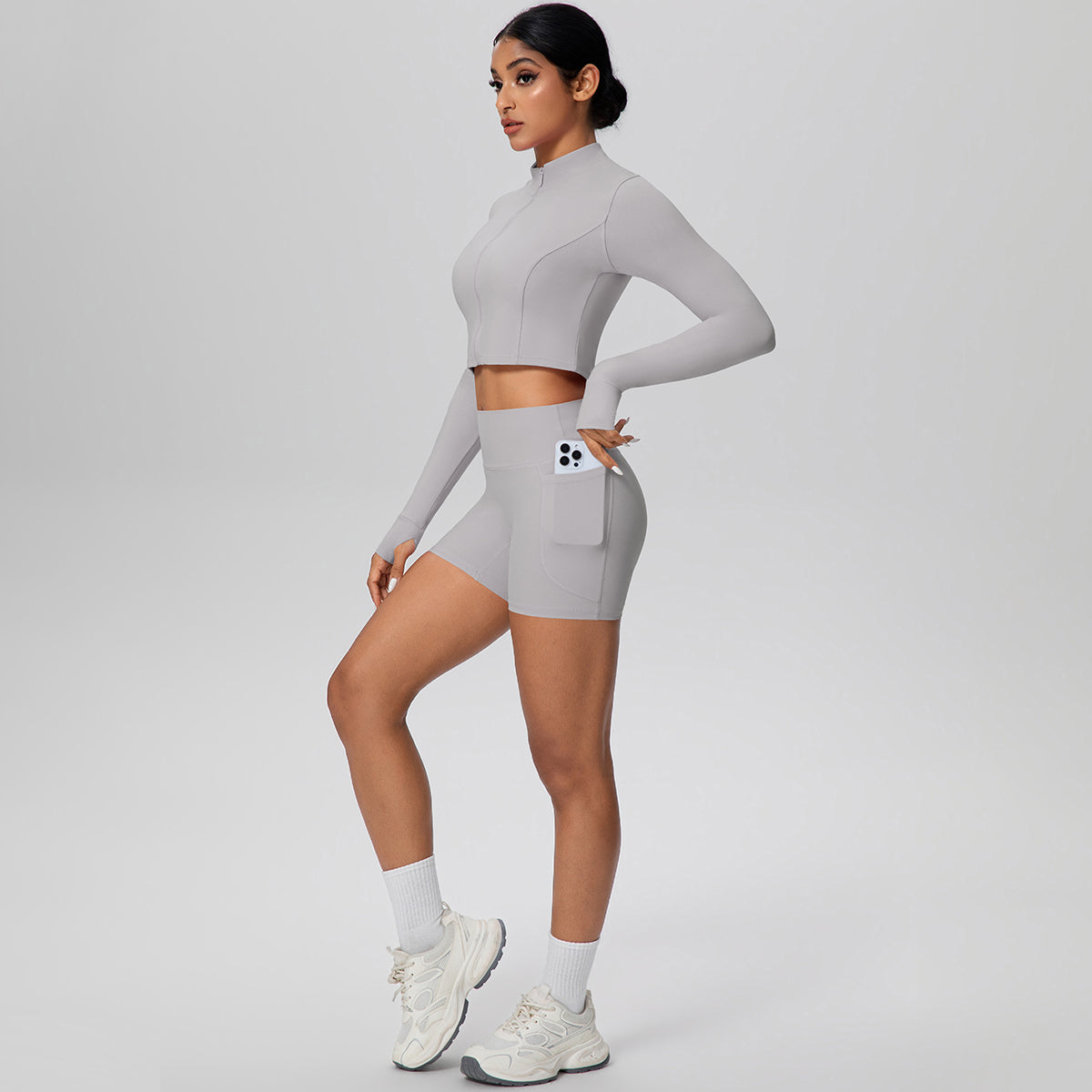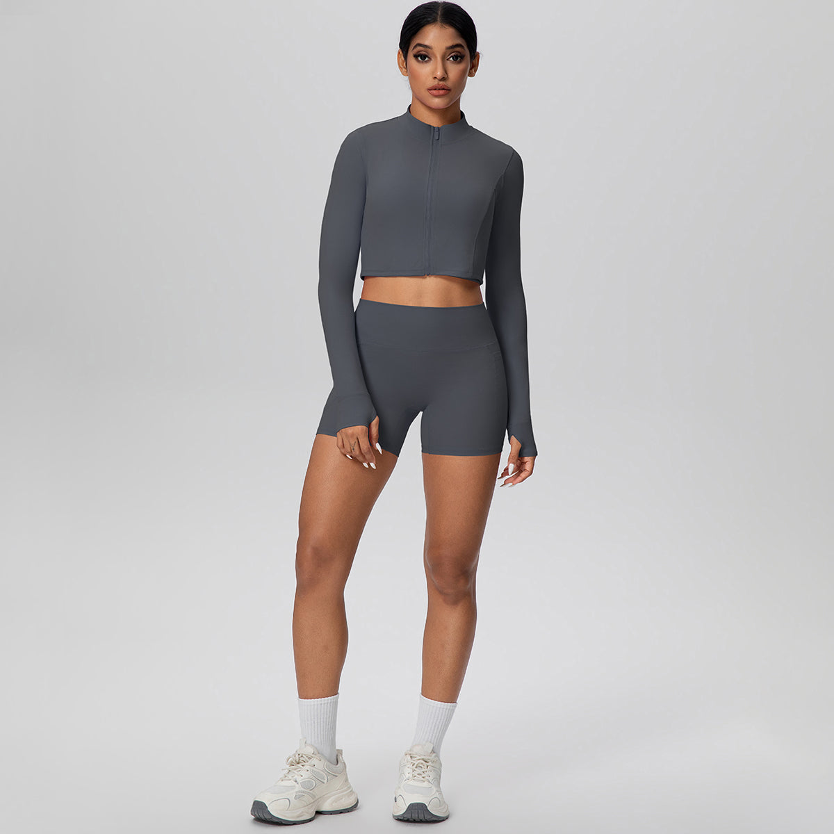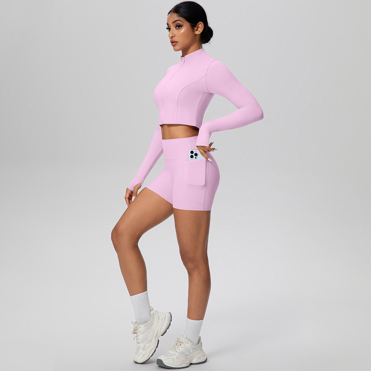 Set de 2 piezas (short con bolsillos y croptop con cremallera)