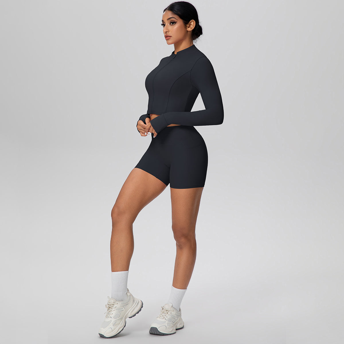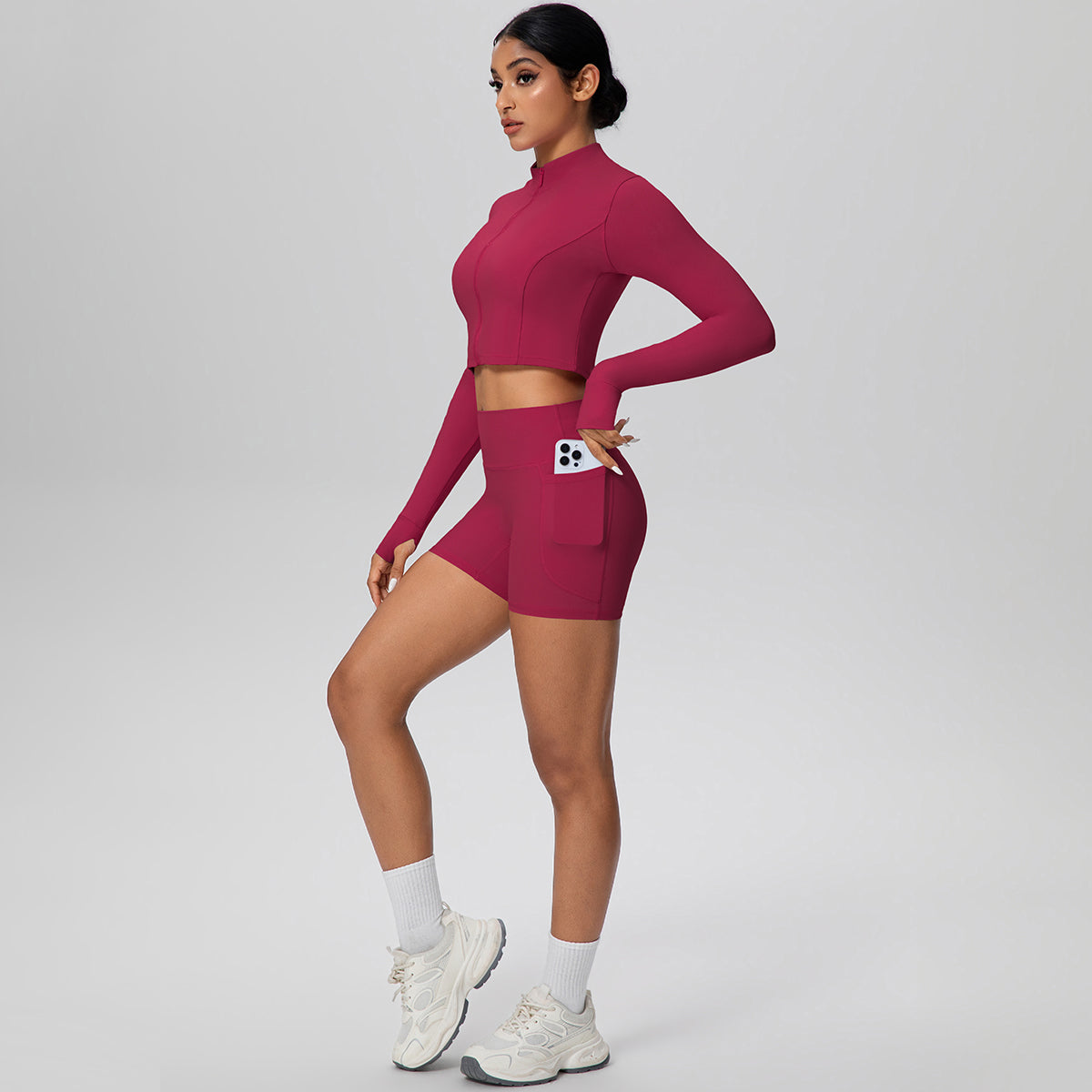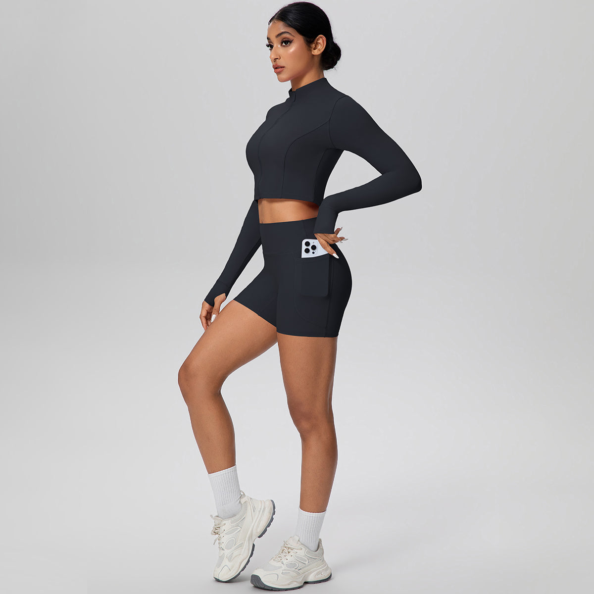 Set de 2 piezas (short con bolsillos y croptop con cremallera)
