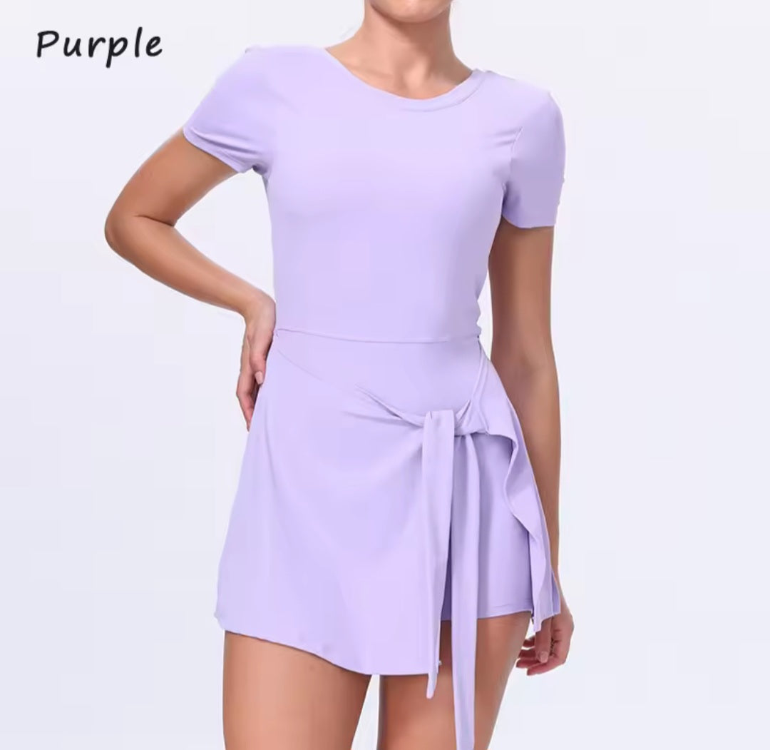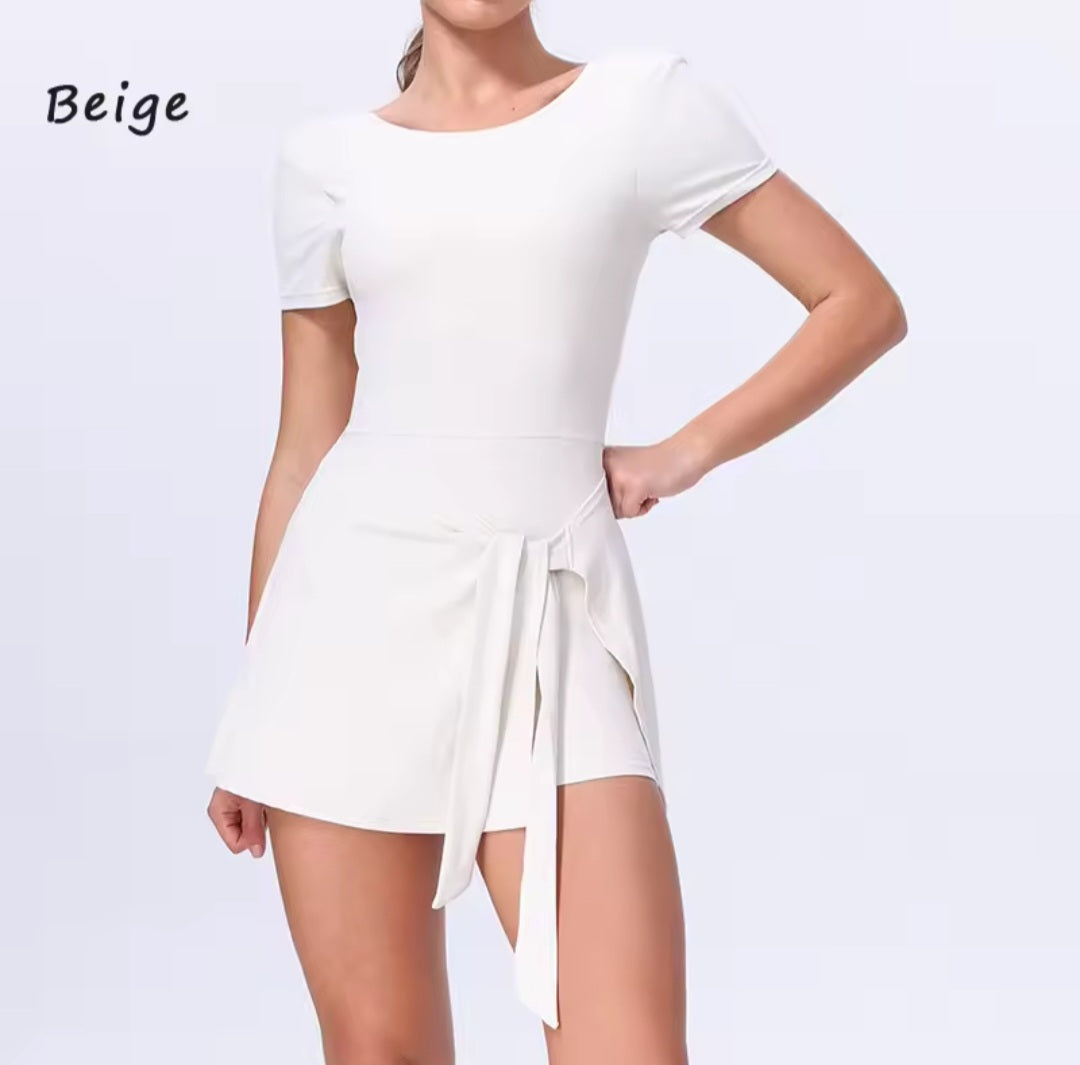 Vestido deportivo falda short, con sujetador integrado, y escote U. Ideal tanto para ir divina a entrenar como para una salida casual. Máxima comodidad y elasticidad. Puedes pedir tu talla habitual, o si prefieres llevarlo más relajado sube una talla.